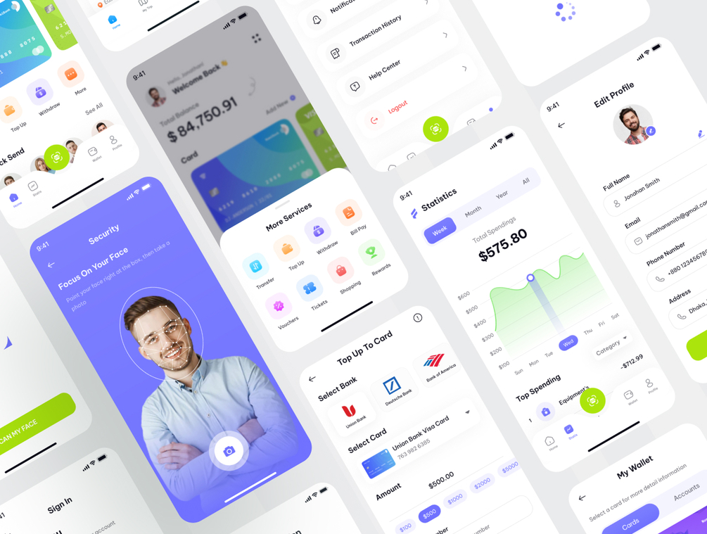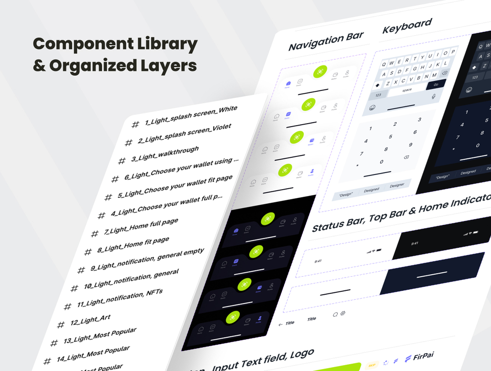 Firpai - Digital Wallet App UI Kit consisting of pixel-perfect screens and easy to use in Figma. The kit is easy to fully customise to your liking and it leverages all Figma features, including global color, font styles, dynamic components & variants. Available in Light mode. Develop your mobile app with these neat, clean, modern and outstanding design screens.