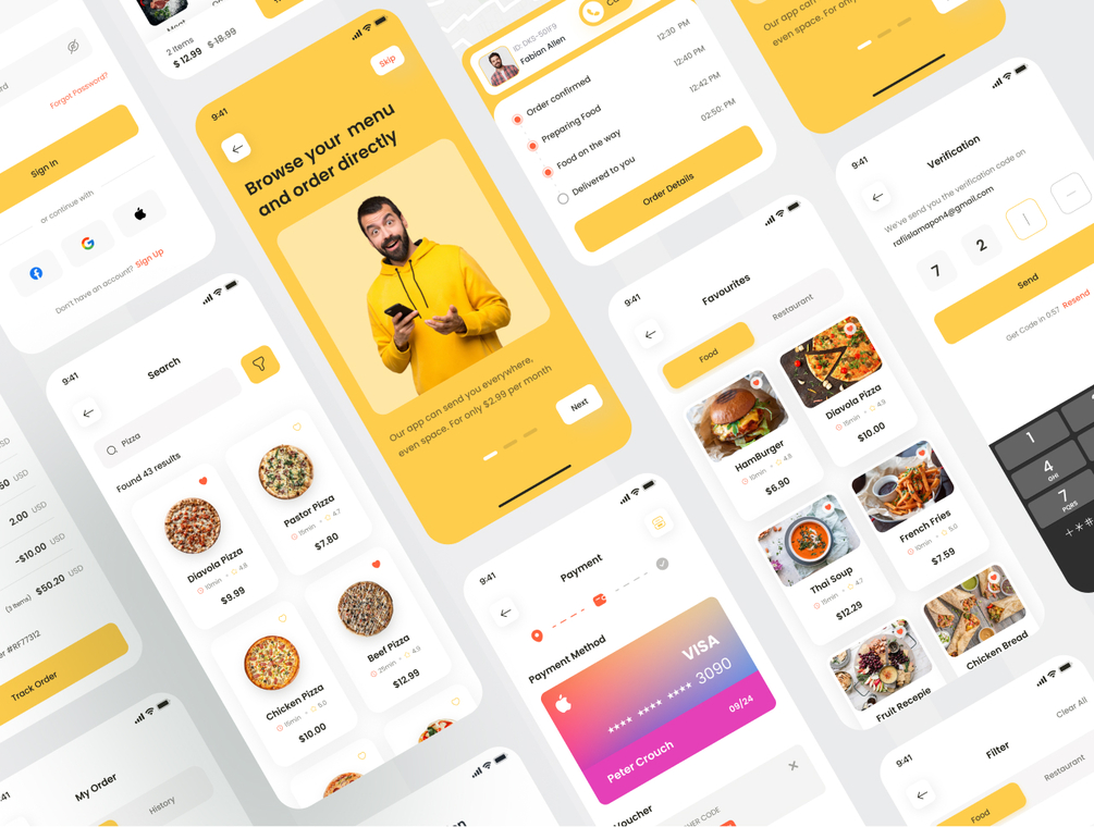 Fodies - Food Delivery App UI Kit consisting of 50 pixel-perfect screens and easy to use in Figma.The kit is easy to fully customize to your liking and it leverages all Figma features, including global color, font styles, dynamic components & variants. Available in Light mode. Develop your mobile app with these neat, clean, modern and outstanding design screens.